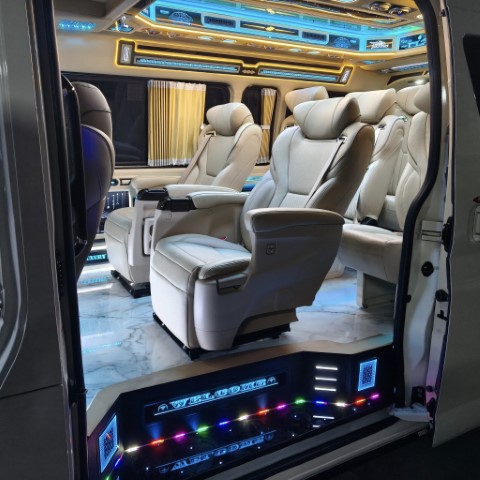 การให้บริการรถตู้ที่ตกแต่งภายในหรูหรา สะดวกสบาย มีระบบความบันเทิงครบครัน (ทีวี,คาราโอเกะ, Wi-Fi) แอร์เย็นสบาย เบาะนั่งสบาย